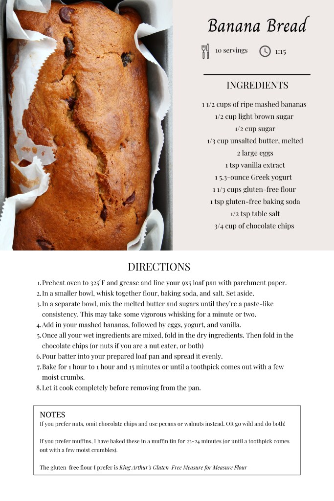 And yes, I bring treats to my mom’s too. She deserves banana bread therapy just as much as the next person.