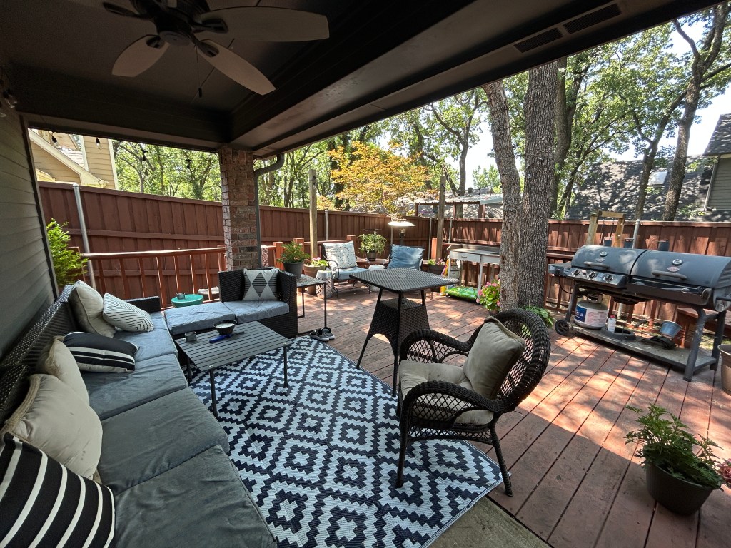 In my last update, I showed off our fabulous little backyard sanctuary—our own DIY haven for when Texas weather behaves and the bugs aren’t staging a coup. But what makes a twinkly-light-covered patio even better?