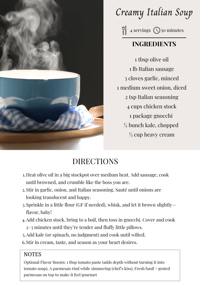 But hey—it’s fall, y’all. Even if Texas is still sweating and my fantasy team is imploding, at least I’ve got soup, caramel coffee, and pumpkin cookies to carry me through.