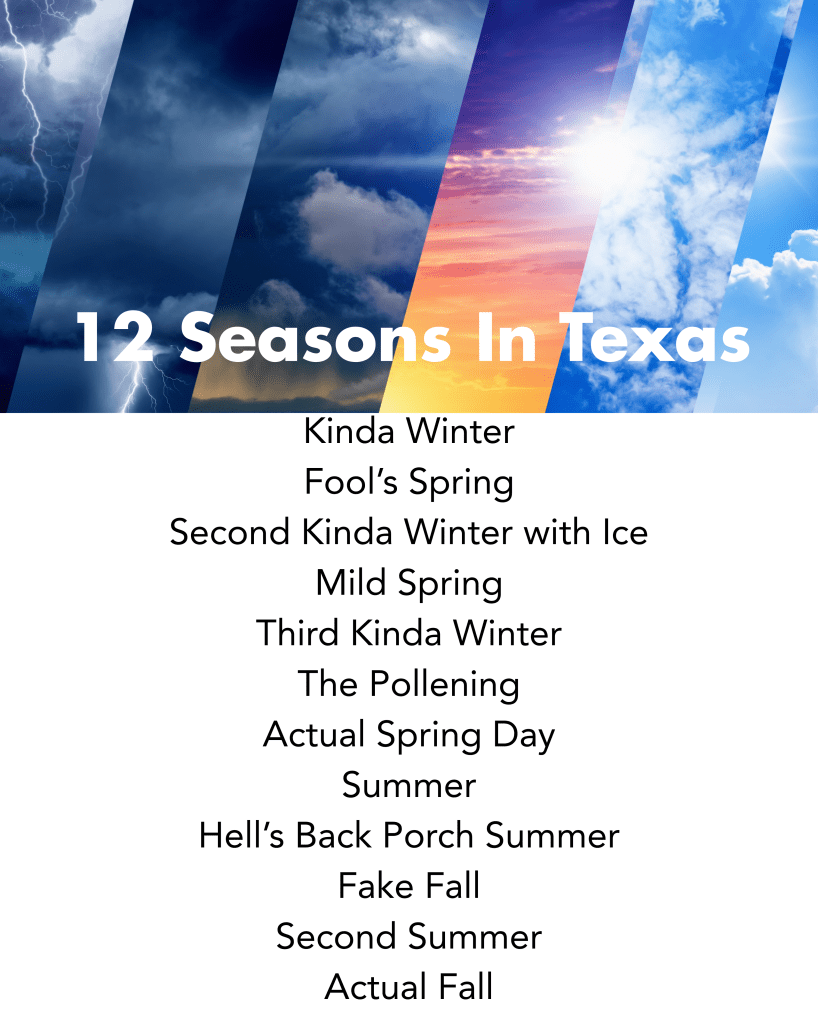 👉 You know the one—Texas has 12 fake seasons and Mother Nature laughs at us every single time.